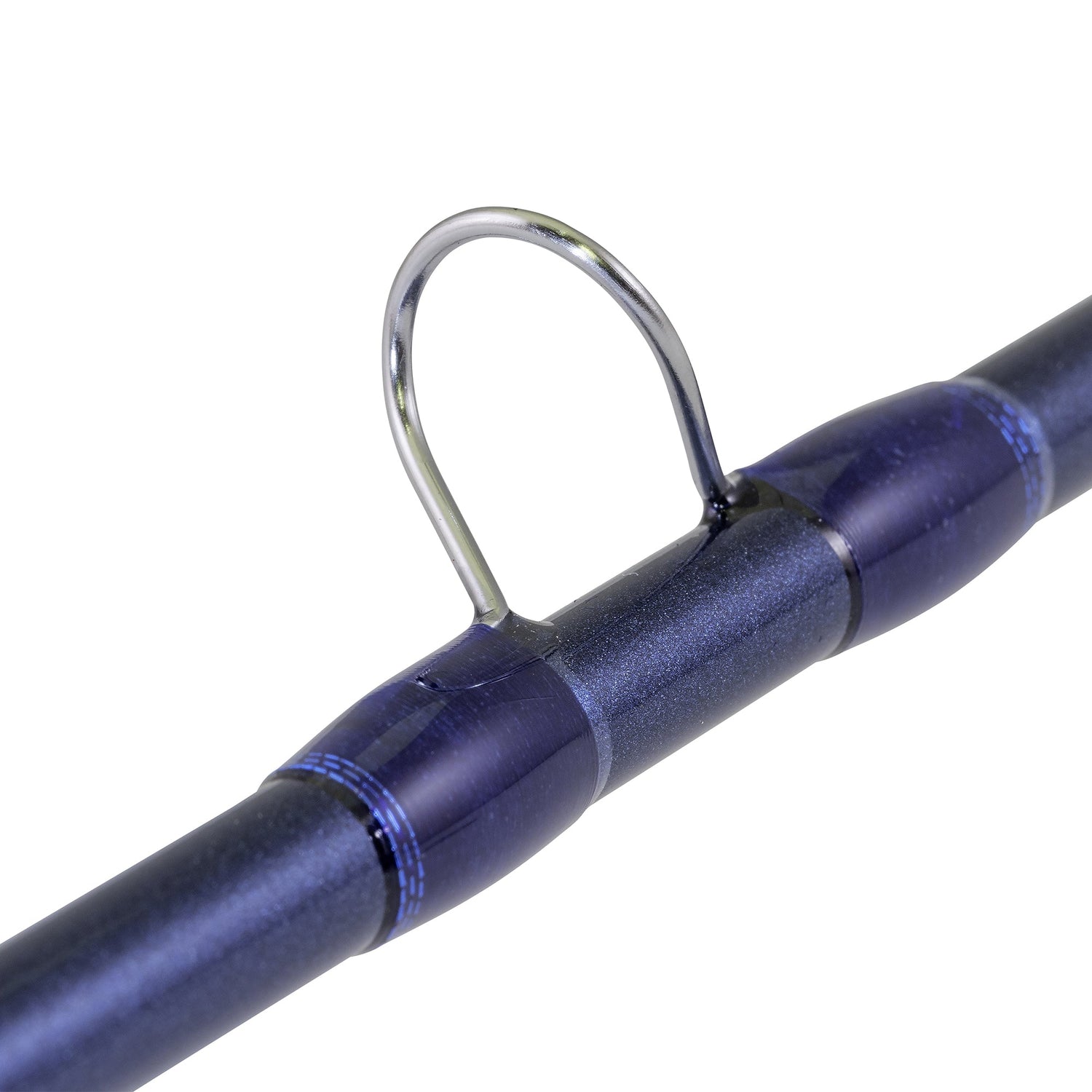 Each rod in this series has a unique, pearlescent electric blue finish to the blank, with two large, SiC lined titanium stripper rings plus hard chrome, saltwater resistant high lift snakes and a hayfork tip ring, all assisting effortless casting. There is a keeper ring for those that require one and the handle is made using ultra-high Super grade North American cork. The reel seat is satin finish aluminum, to keep weight to a minimum, anodised for a corrosion-proof finish in saltwater. The butt extension is of the same high grade cork and tipped with rubber composite cork, for additional wear resistance.